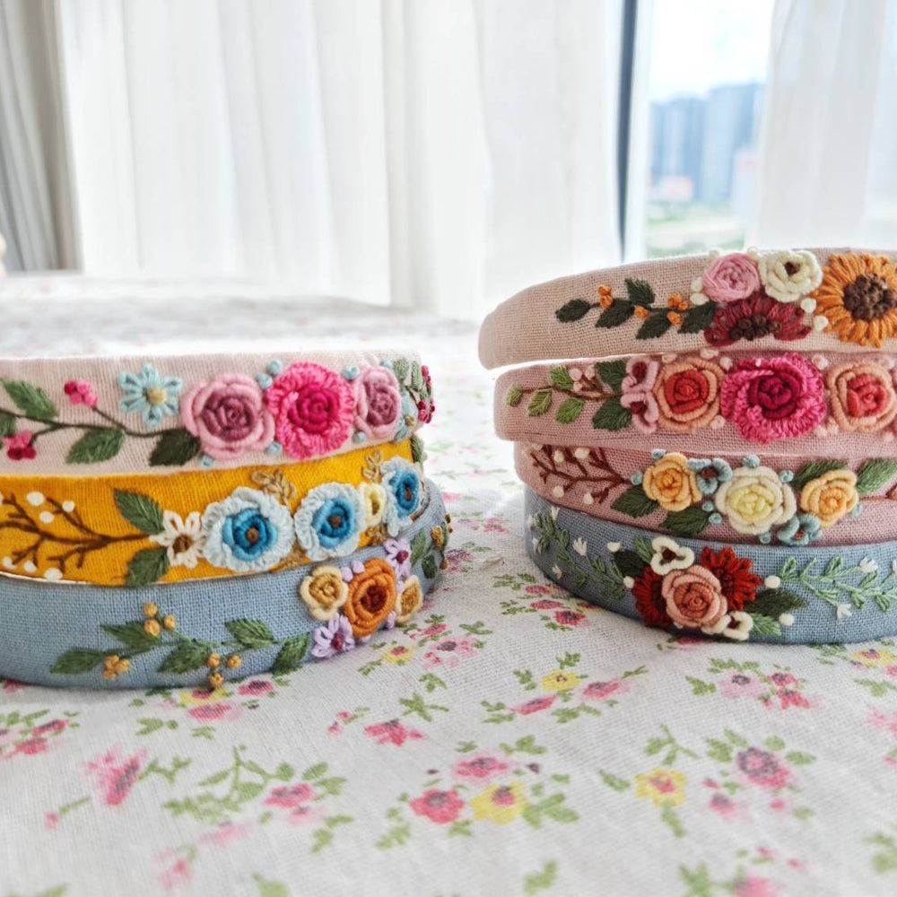 Add Elena Floral Embroidered Headband, Style One to the cart