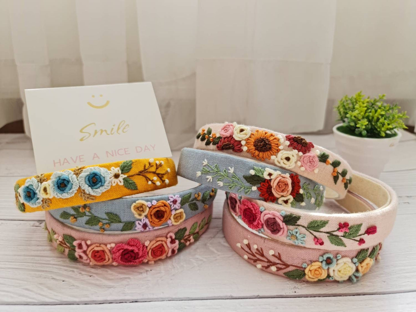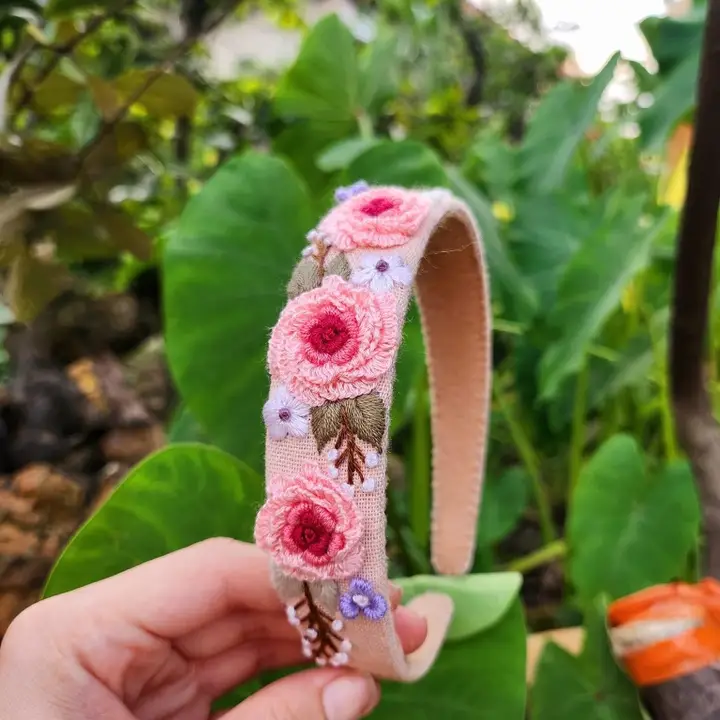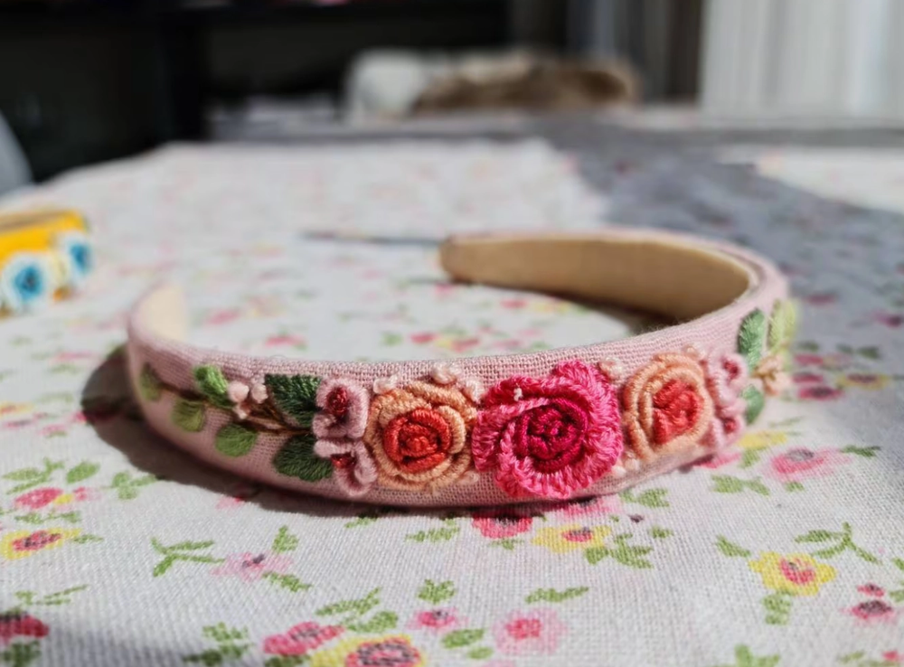 Add Elena Floral Embroidered Headband, Style Five to the cart