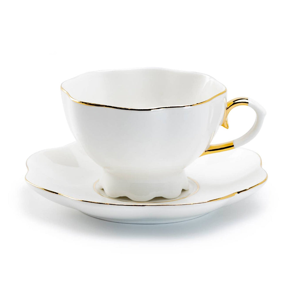 White Gold Scallop Fine Porcelain Tea Cup and Saucer