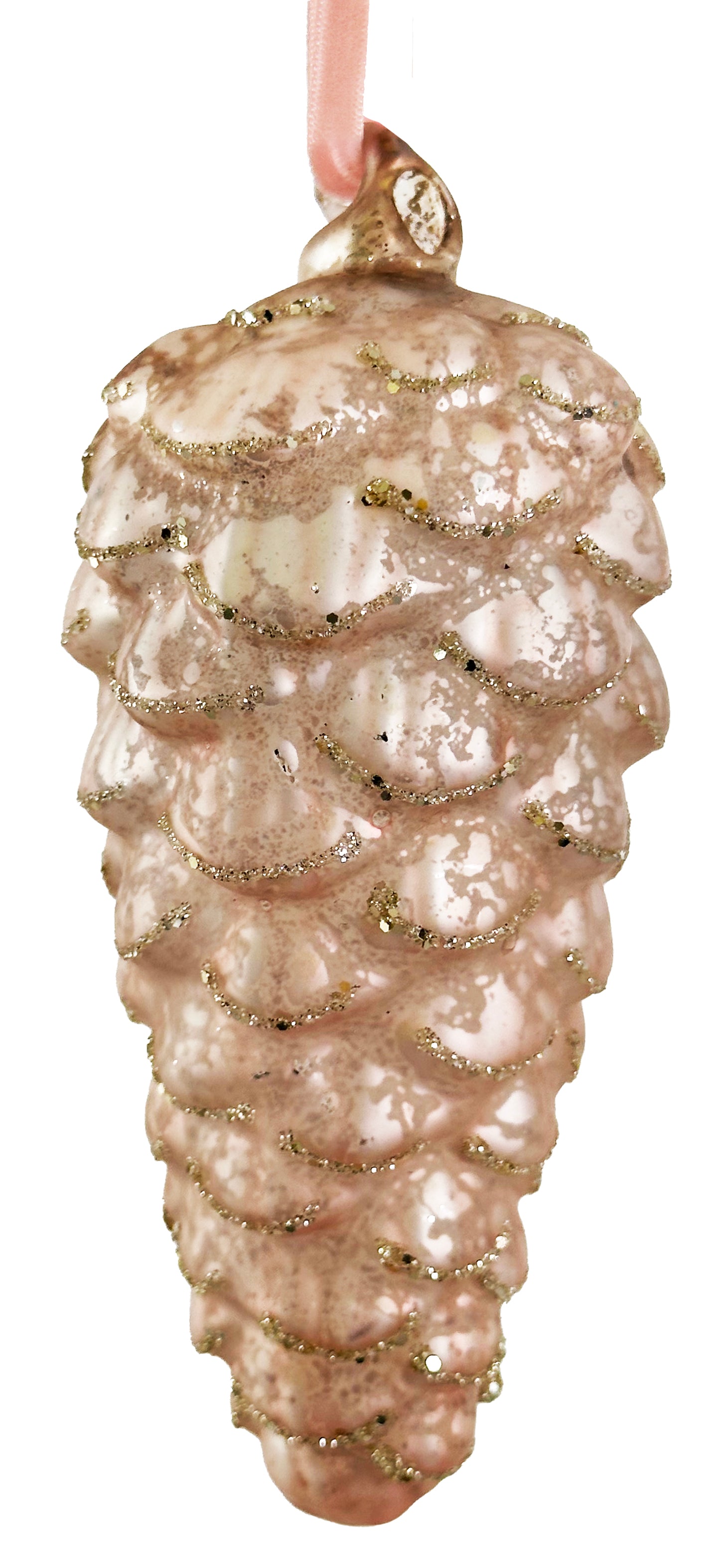 Add Glass Pinecone Ornament, Antique Pink Glitter, Medium to the cart