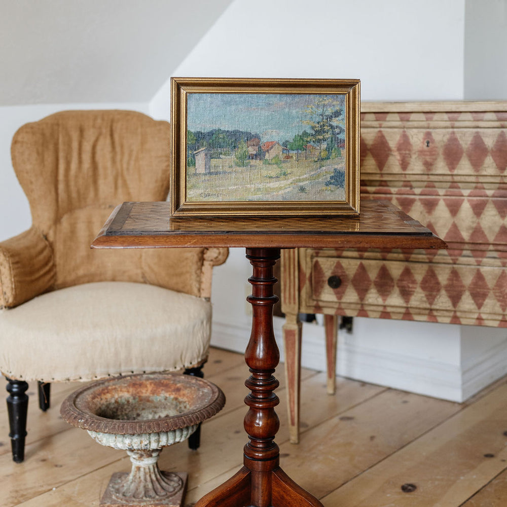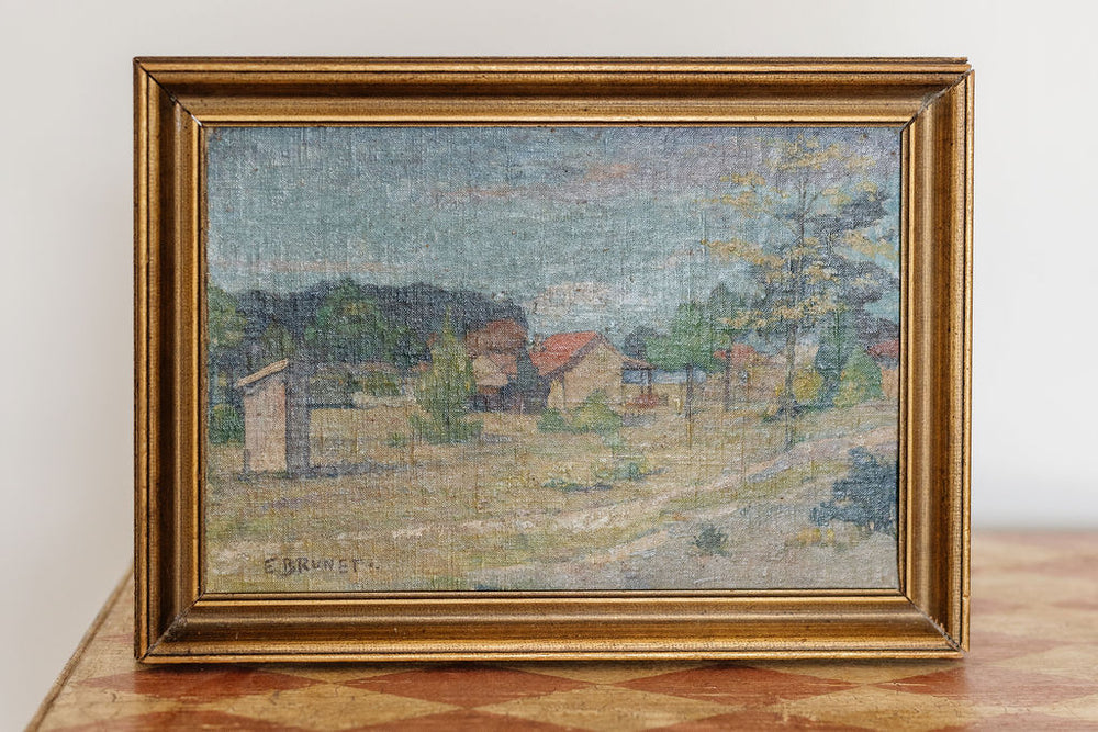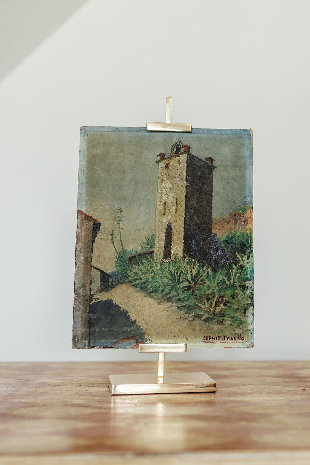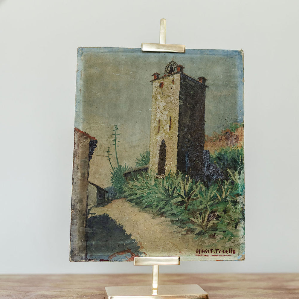 Add Antique Painting of Large Stone Tower in a Village to the cart