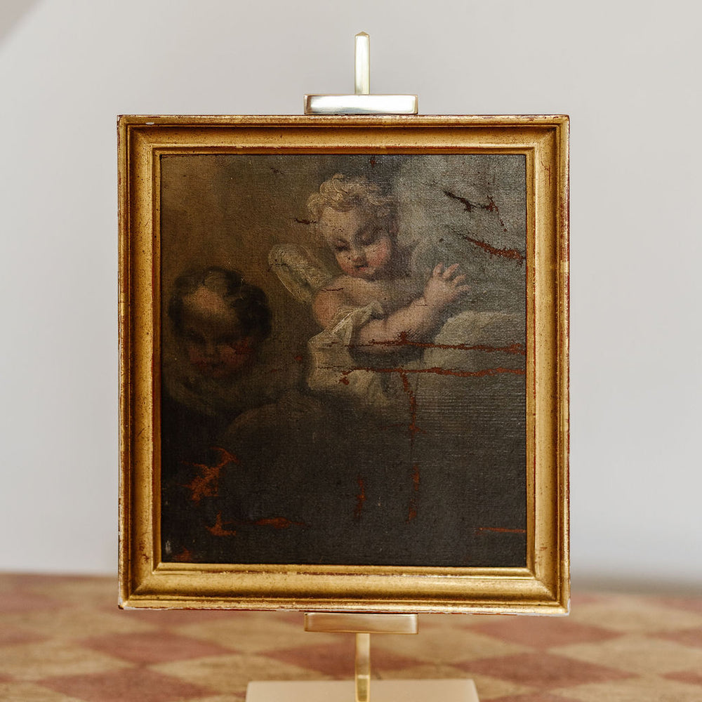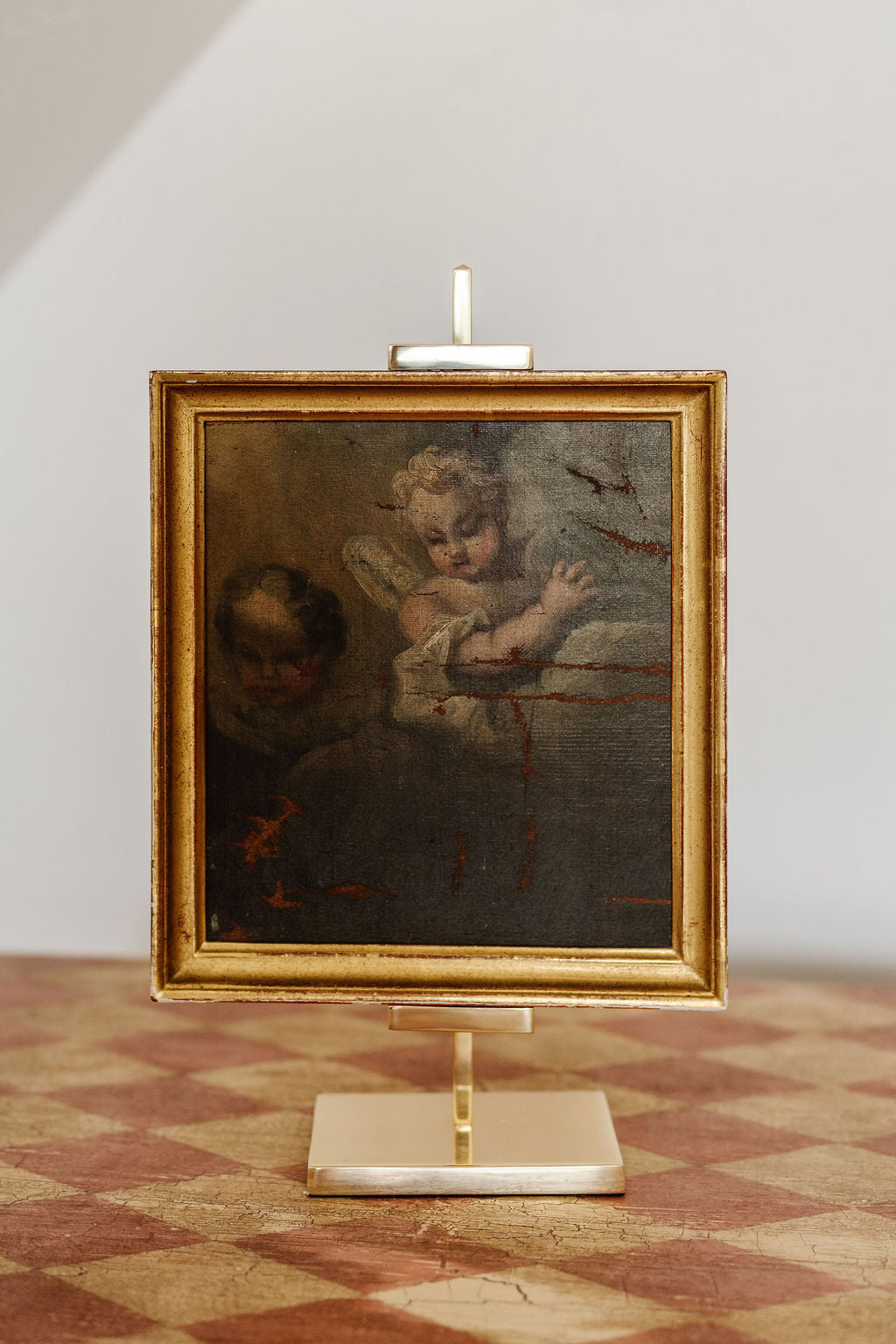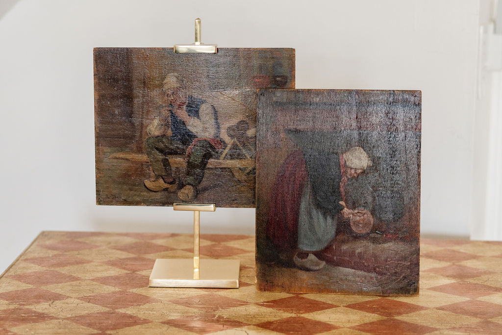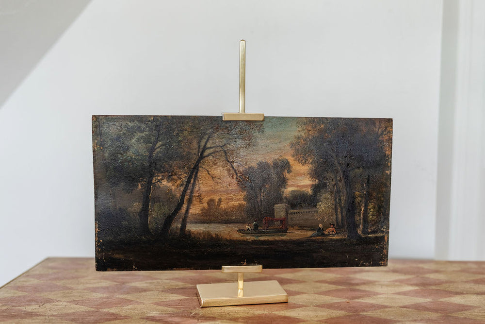 Add Antique Painting of Large Stone Tower in a Village to the cart