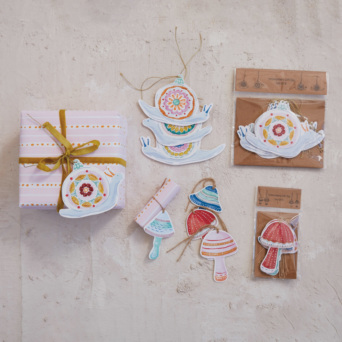 Add Paper Mushroom Gift Tags, Ornaments with Embroidery, Set of Eight to the cart