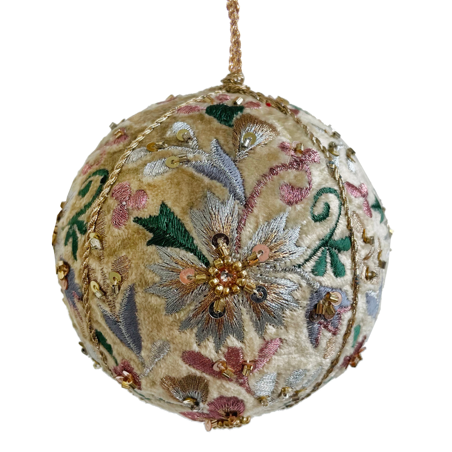 Add Velvet Ball Ornament with Floral Embroidery, Small to the cart