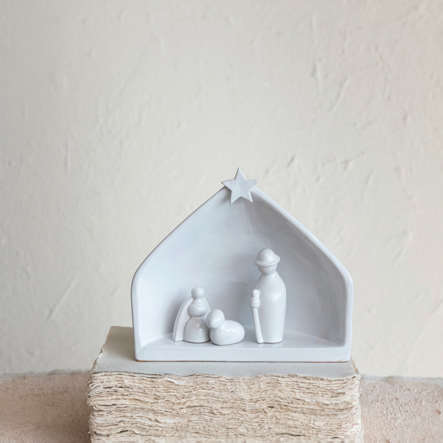 Add Stoneware Nativity, Reactive Glaze, White, Set of 5 to the cart