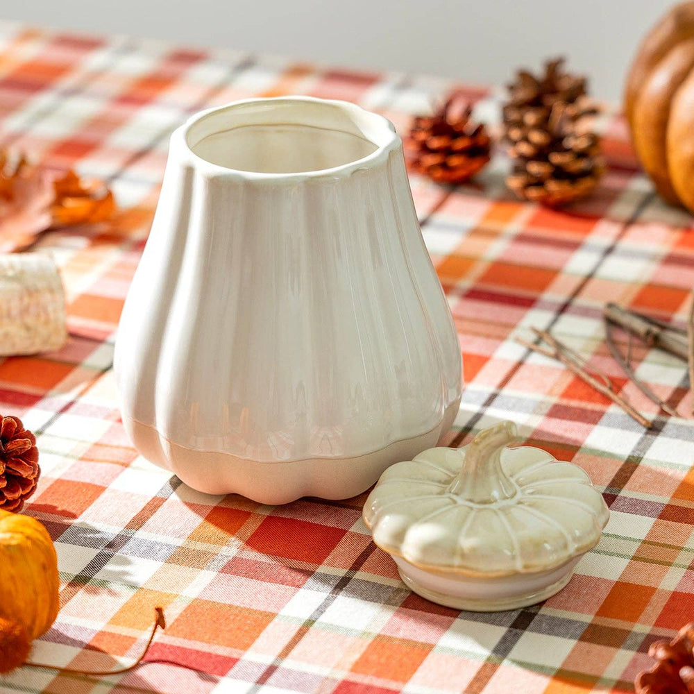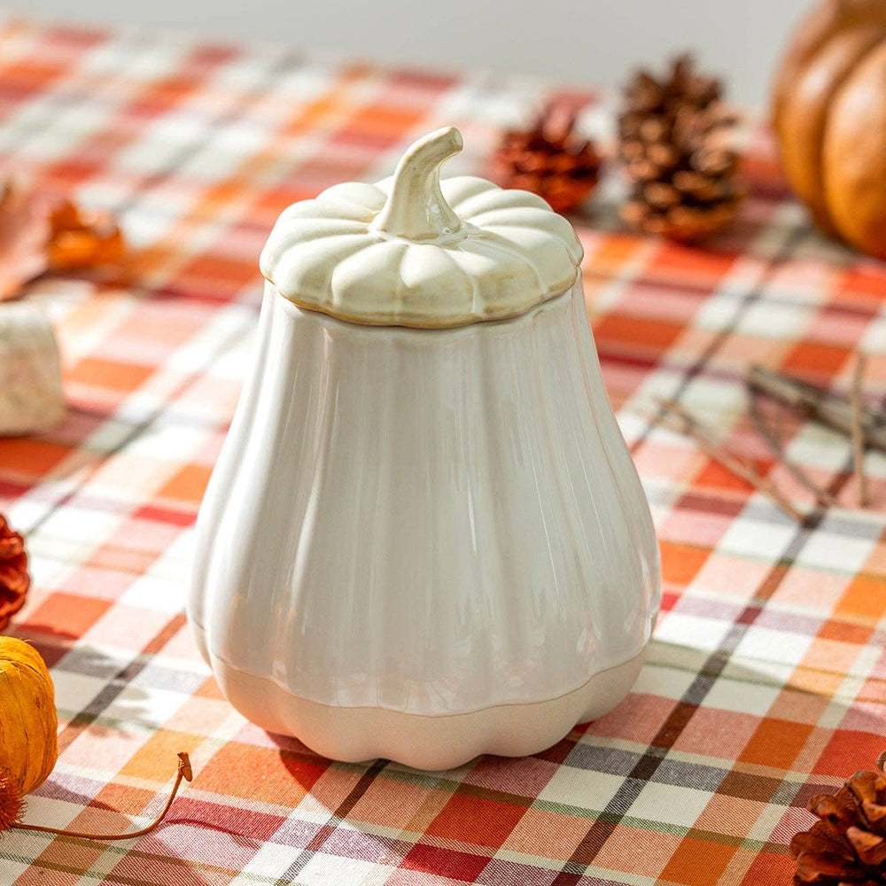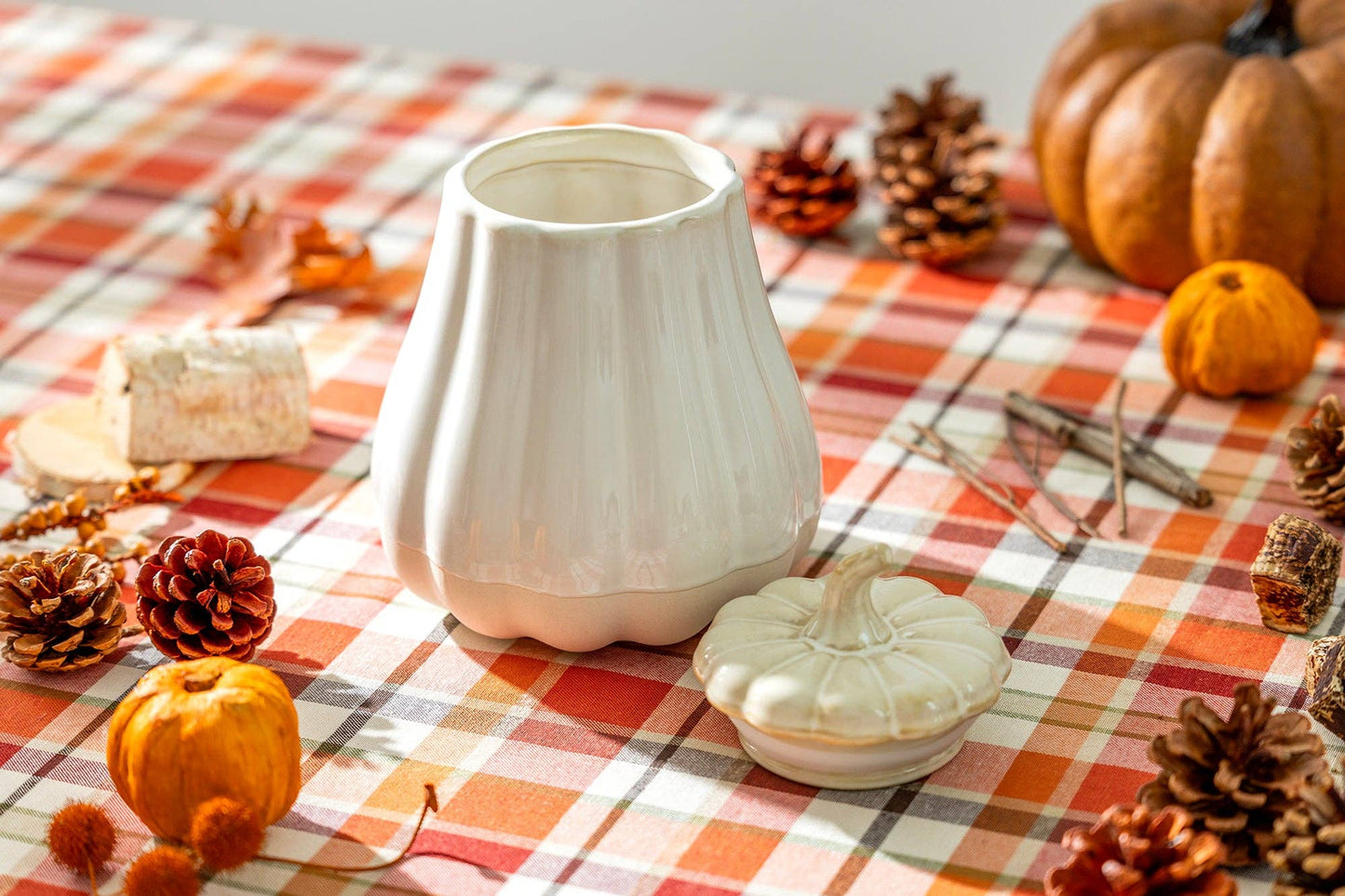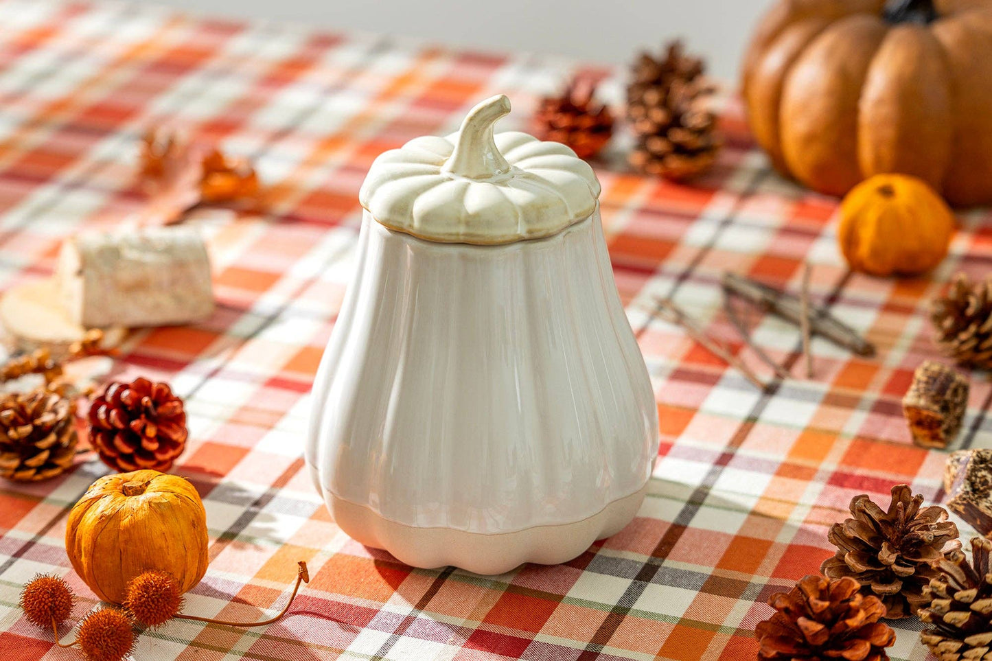 Add White Pumpkin Figural Reactive Glaze Jar & Silicone Seal Lid to the cart