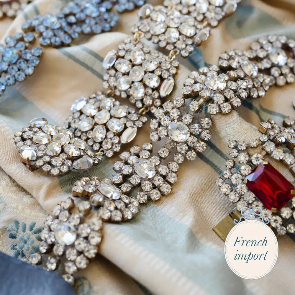 Straight from the heart of France, these exquisite antique crystal bracelets are true heirloom pieces — each one a unique artifact of timeless elegance and European craftsmanship. Sourced through French markets and ateliers, these bracelets feature intricate crystal arrangements, vintage settings, and the unmistakable character of early 20th-century design.