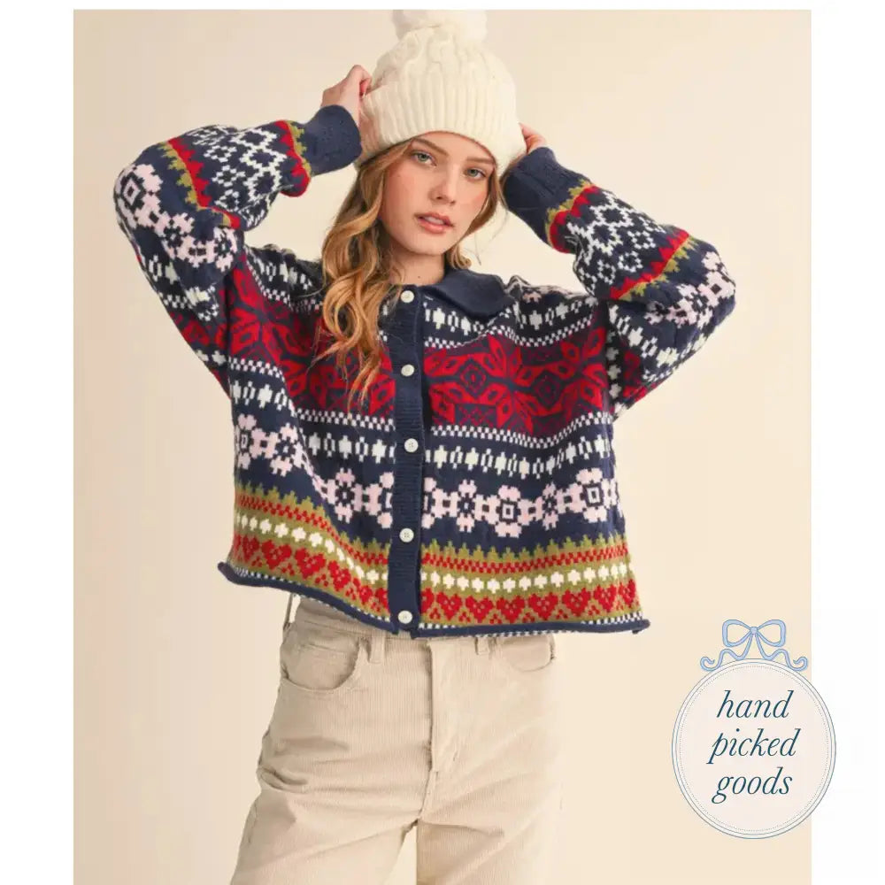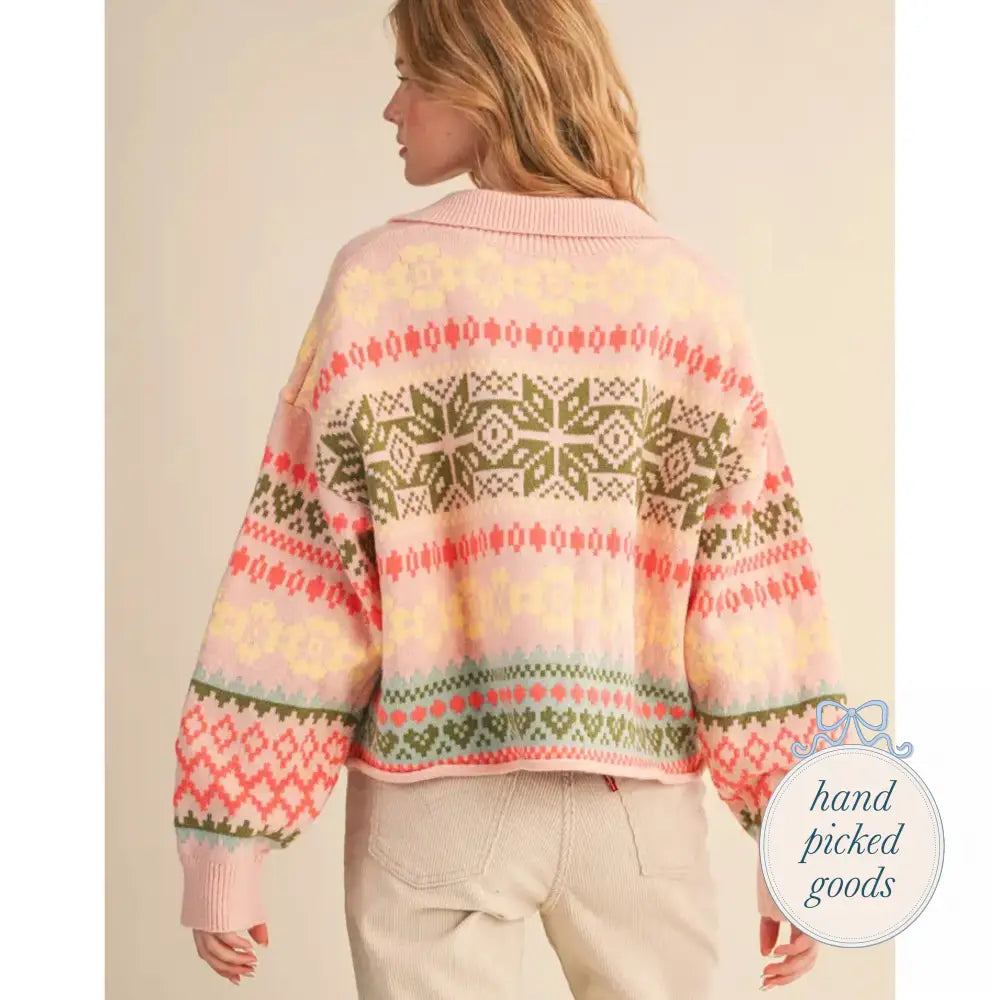 Features: Button down placket with covered buttons, ribbed collared neckline, drop shoulder long sleeves with ribbed cuffs.