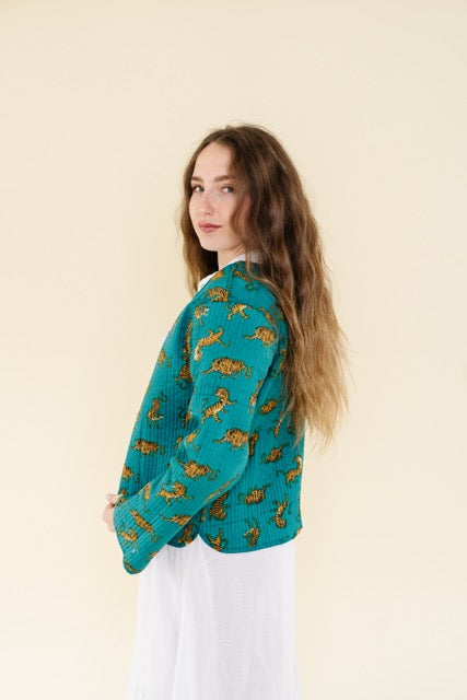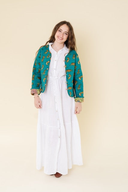 Inspired by a day at the market in France, and exclusively made for La Petite Maison, this vibrant quilted jacket bursts with botanical designs in rich tones. A flattering silhouette that's completely reversible, it’s a wearable piece of cheerful elegance.