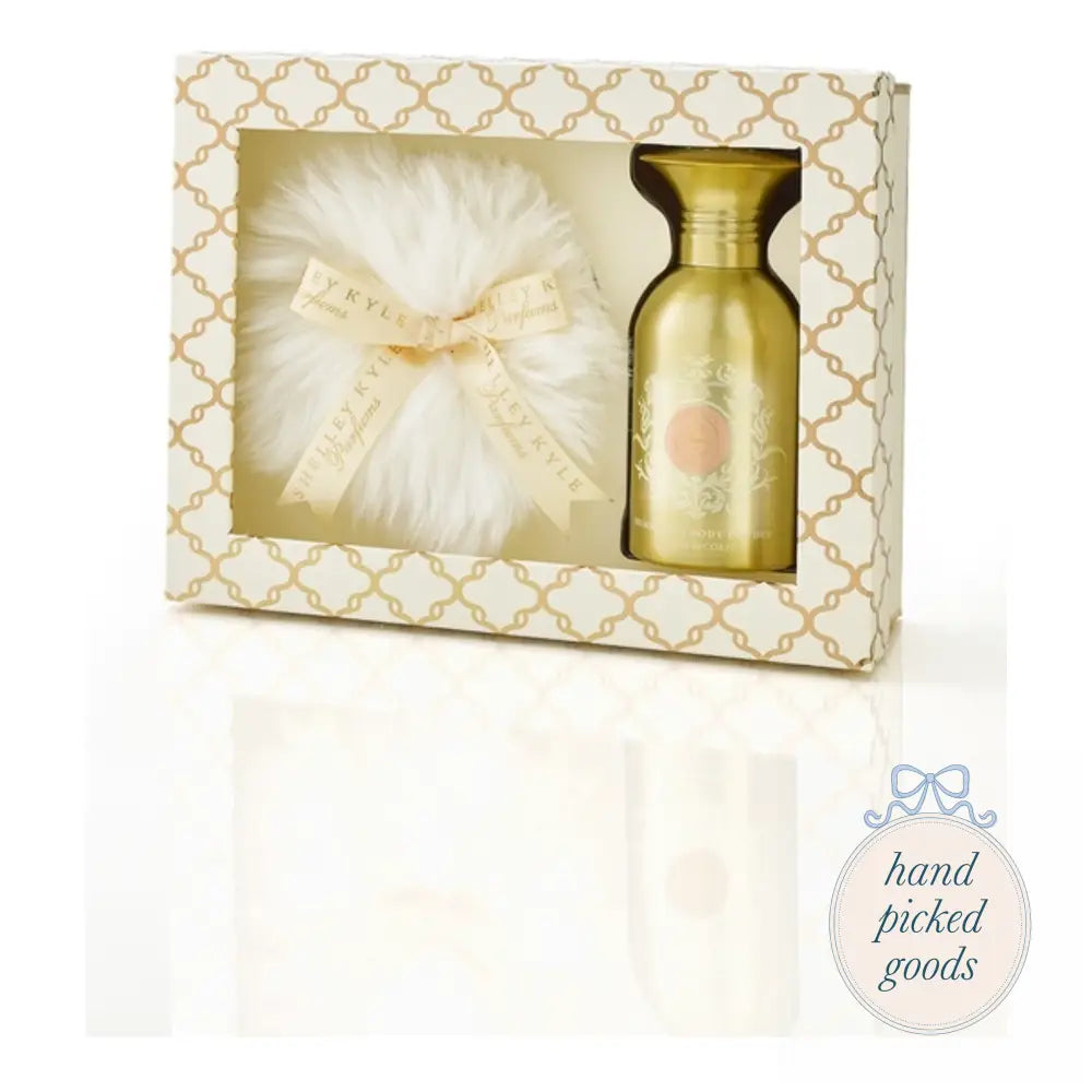 Features: Shimmer Body Powder Talc-Free with Baby Puff makes it easier to maintain. Dust your skin with the included puff for easy application and a gorgeous, even shimmer and scent that sticks with you all day long. Sorella has a sensual scent. Tiramani scent is a combination that includes blood orange, cashmere musk, madonna lily, night-blooming jasmine and white nectarine.