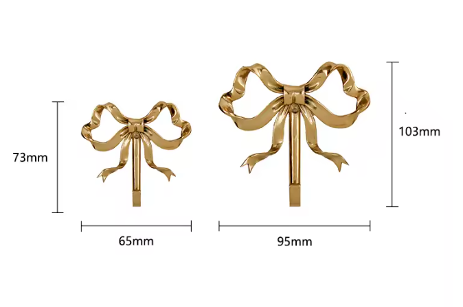 Add a touch of charm with this gold bow wall hook. Perfect for keys, jewelry, or light accessories. Its elegant ribbon design brings vintage-inspired whimsy to any space.