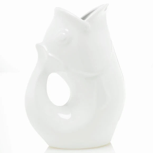 This gurgle pot is a charming ceramic pitcher that produces a delightful "gurgling" sound when poured. With its sleek design and playful functionality, it adds whimsy and elegance to any table setting.