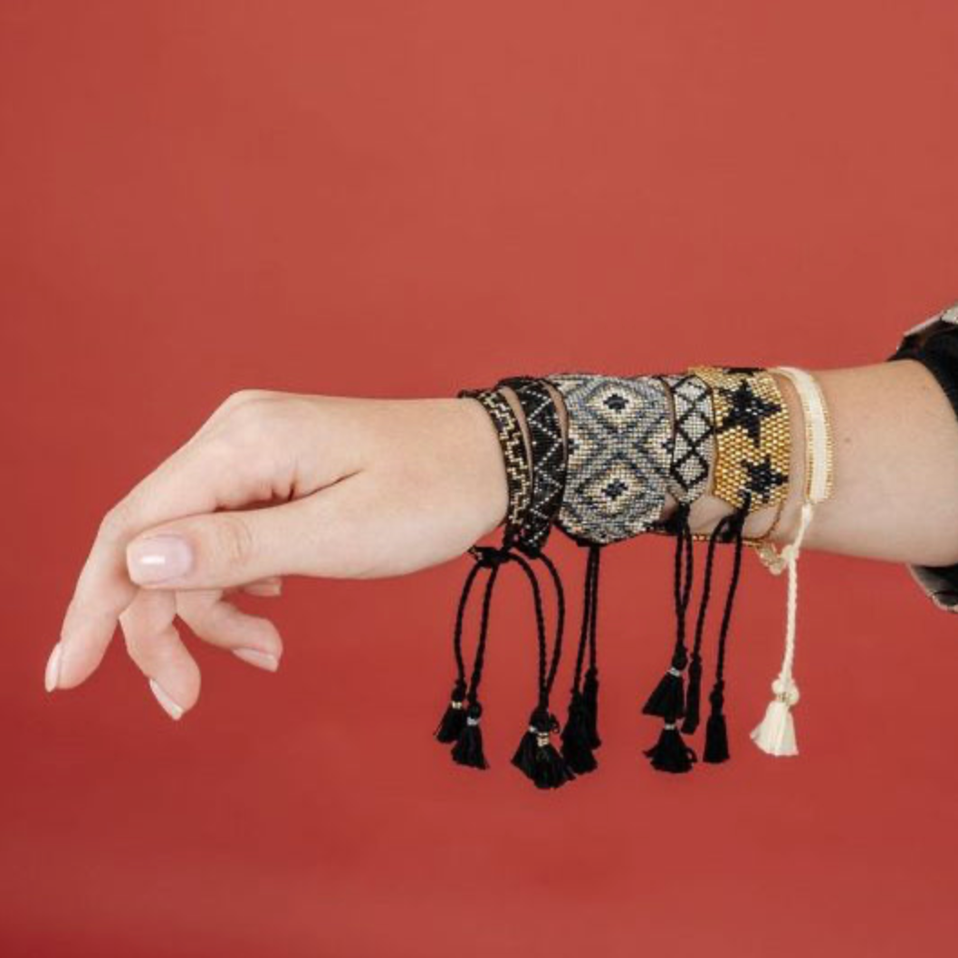 Flat Beaded Gold Bracelet with Black Stars