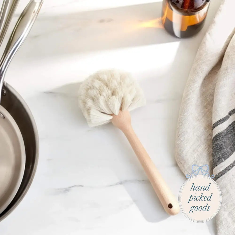 Materials: 100% Natural Horsehair Fiber Dish Brush with Untreated Beechwood Handle