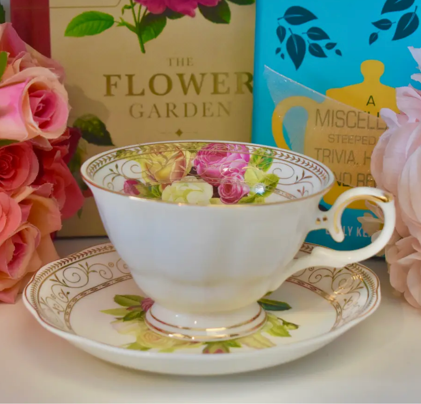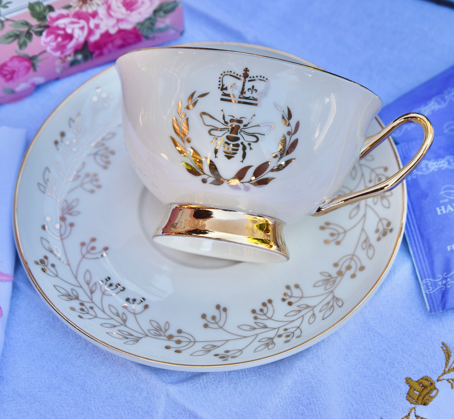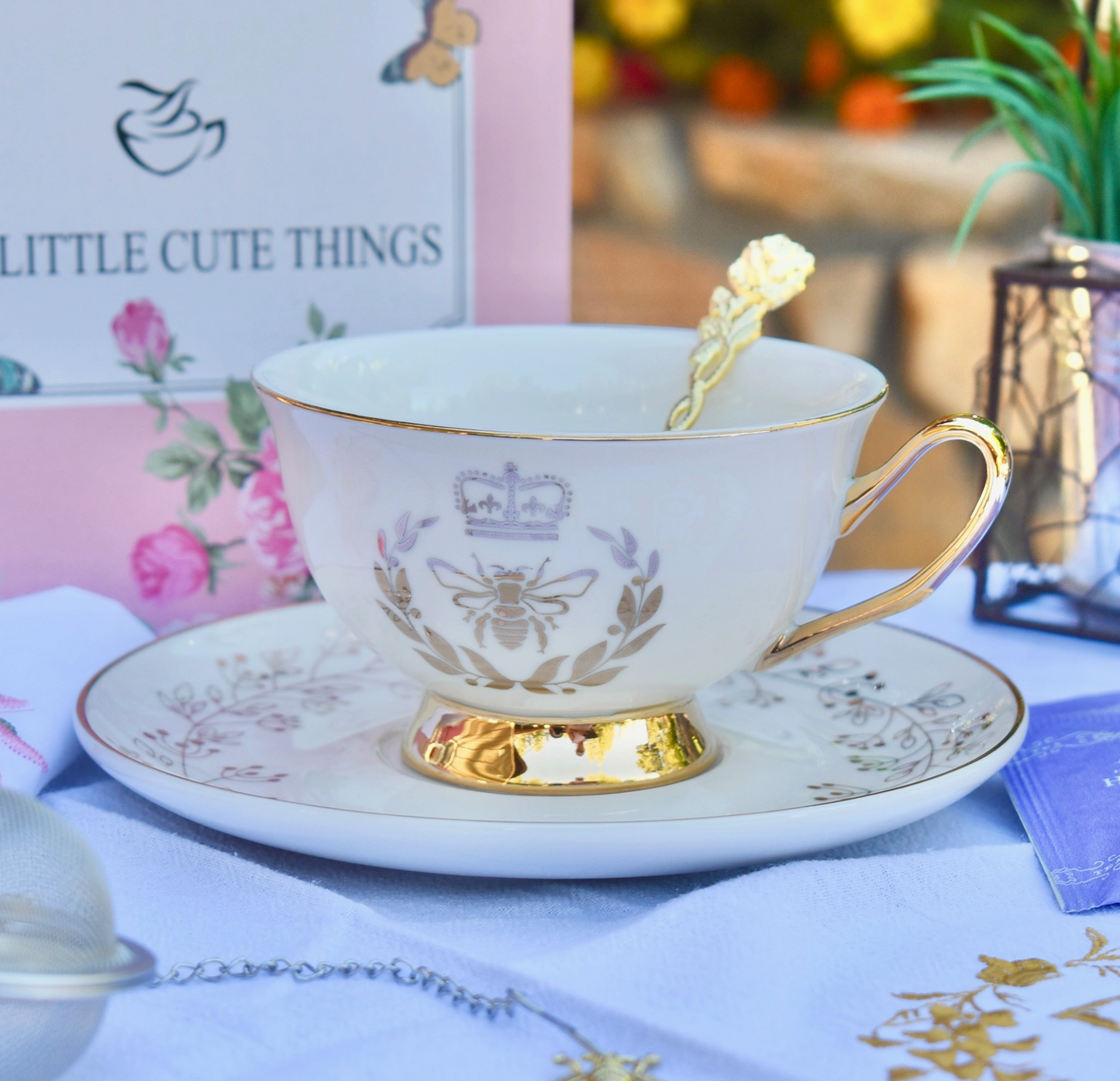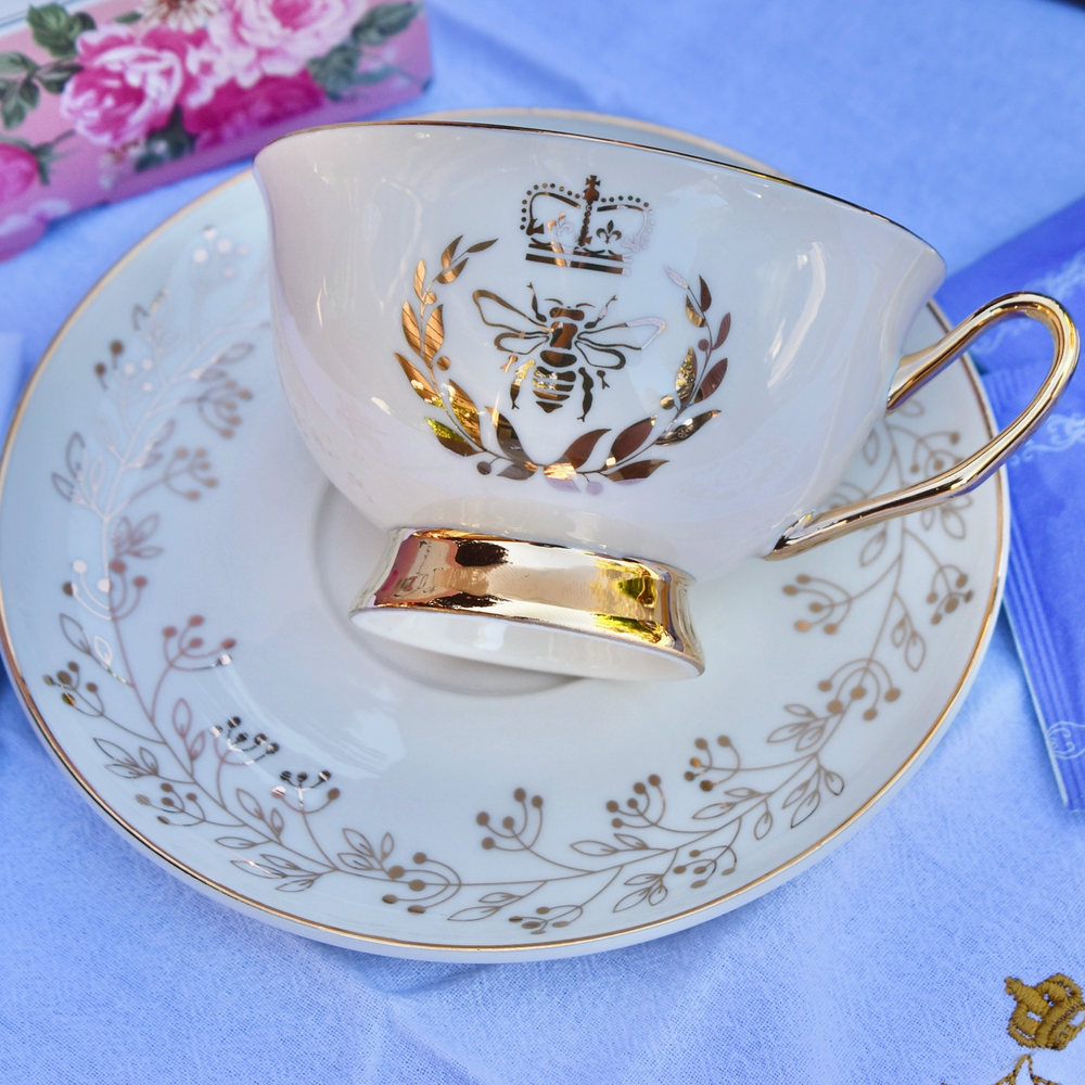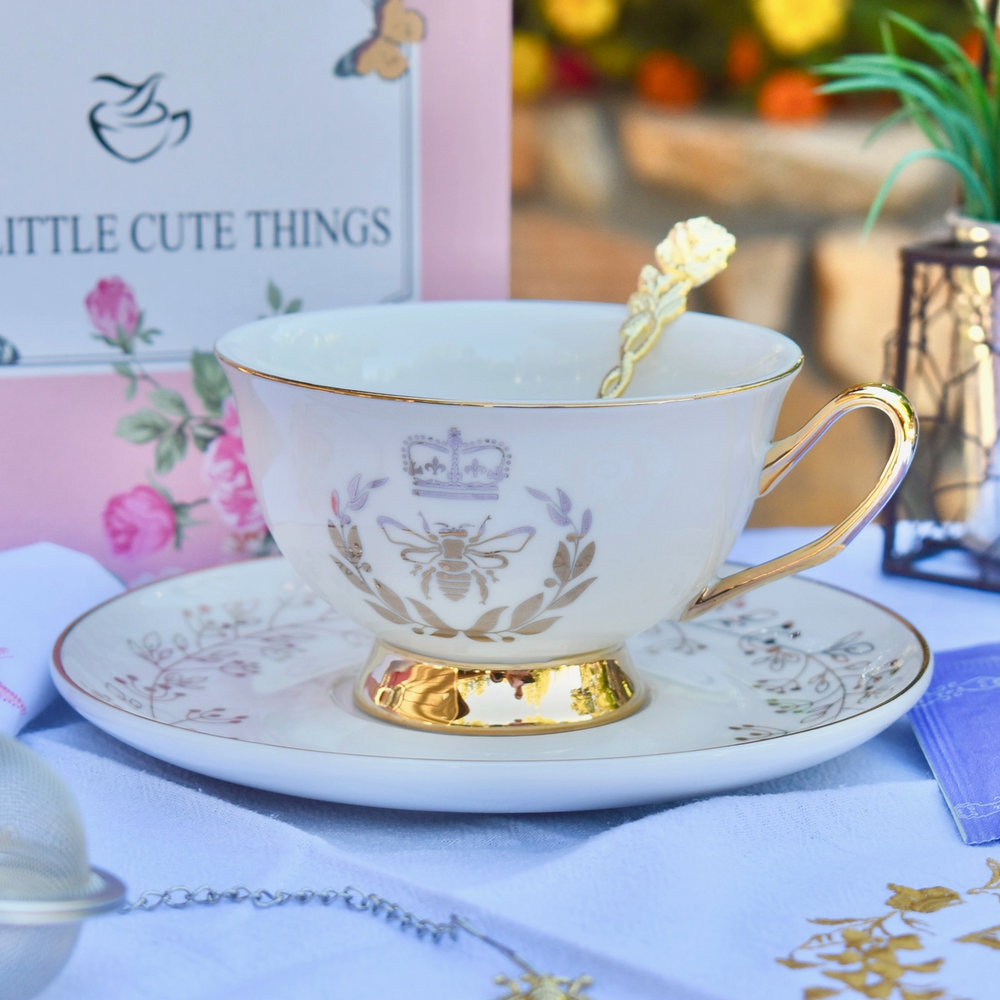 Add Queen Bee Ivory Pearl with Gold Teacup and Saucer to the cart