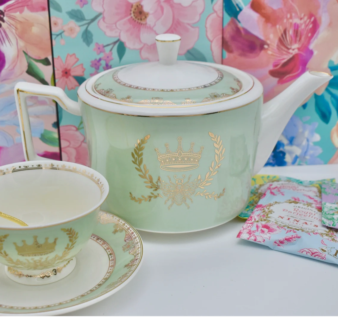 Add Gold Queen Bee Mint Green Teapot to the cart