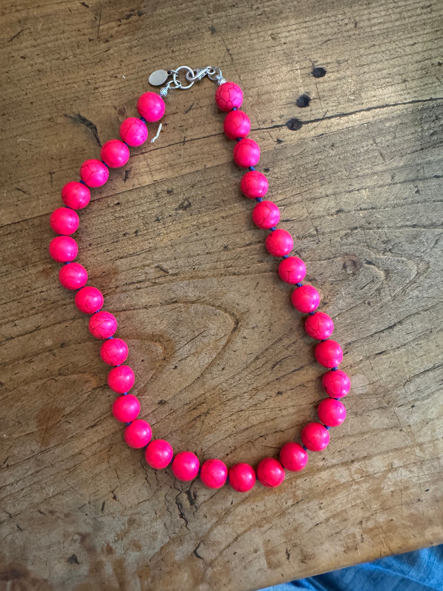 Add Hand Knotted Pink Howlite Turquoise Necklace to the cart