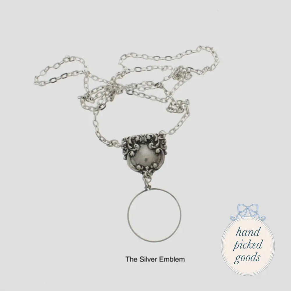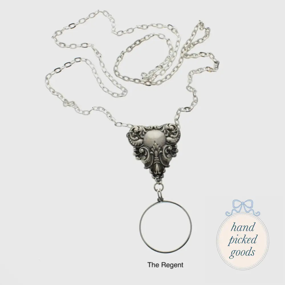 Features: Intricate Victorian-inspired pendants, including timeless designs and a charming cherub motif. This necklace offers a functional magnifier discreetly integrated into the sophisticated design.