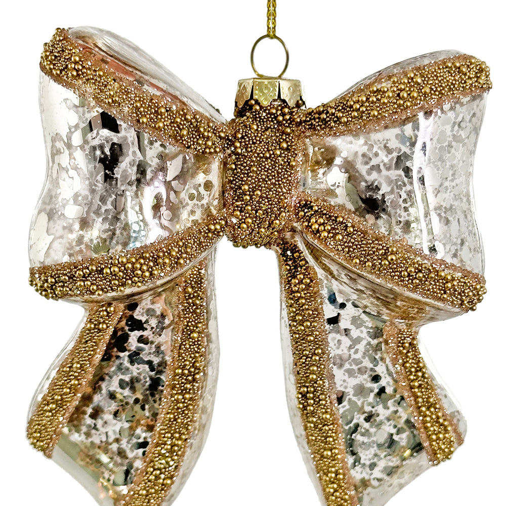 Add Glass Bow Ornament, Antique Silver with Gold to the cart