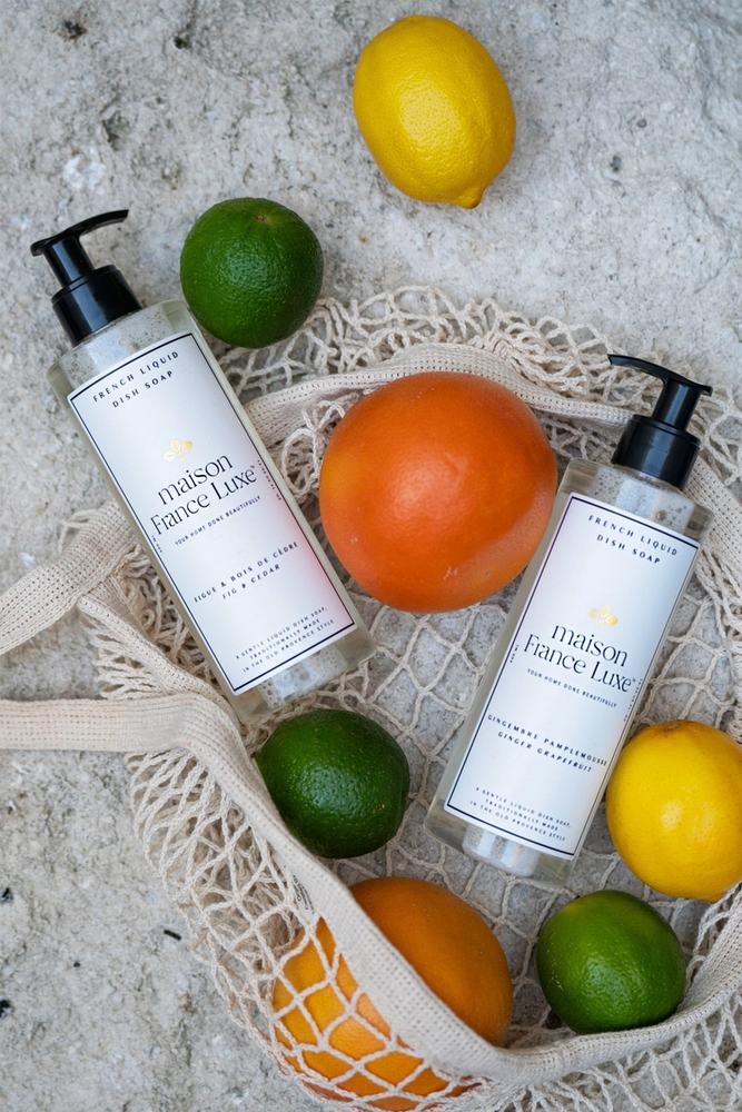This Maison France Luxe liquid dish soap combines elegance and effectiveness with a luxurious formula. Infused with delicate fragrances, it gently cleanses dishes while adding a touch of French sophistication to your kitchen.