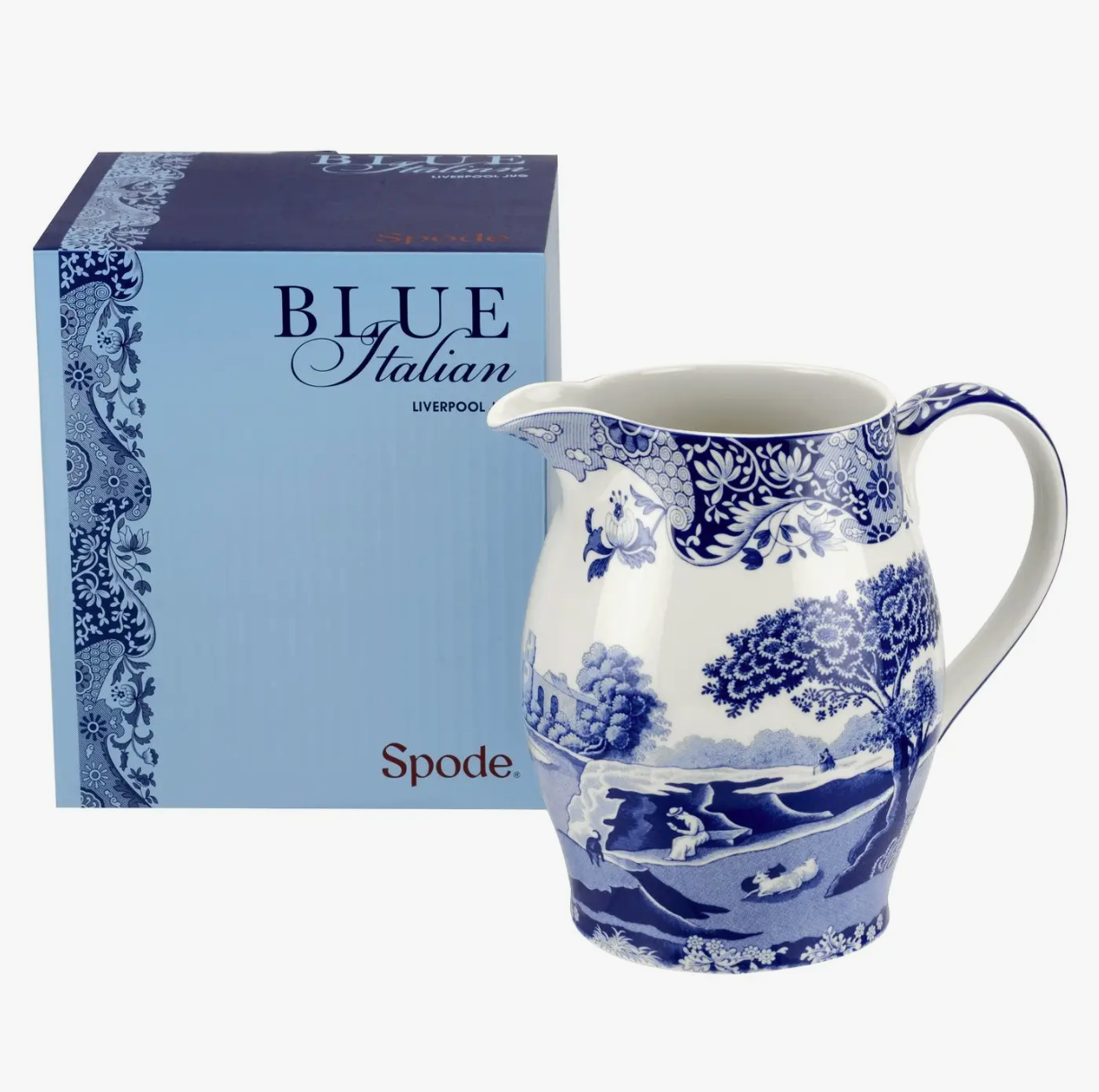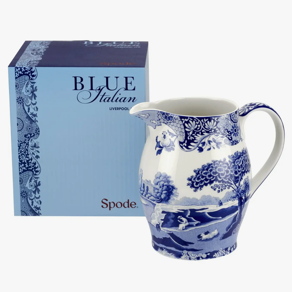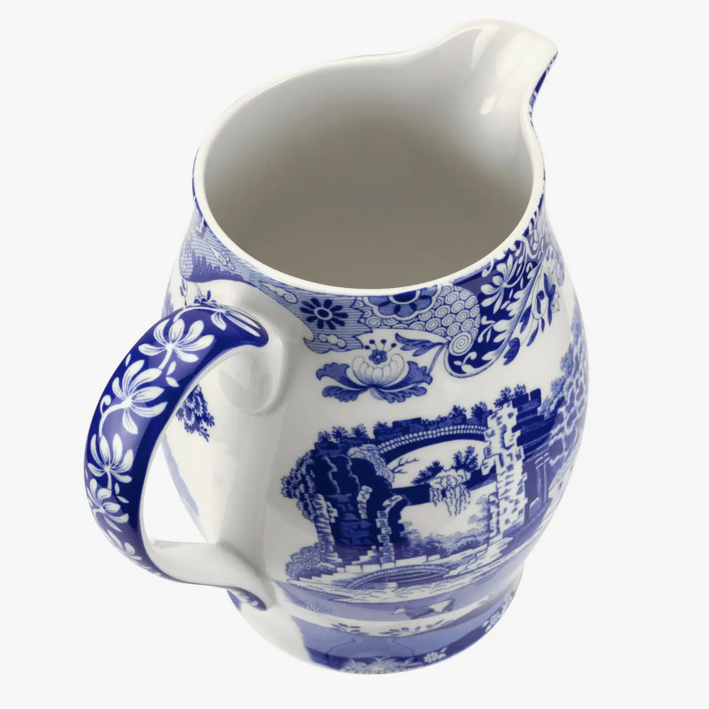 Elevate your table setting with our Spode Blue Italian Pitcher. This elegant piece, adorned with intricate Italian-inspired designs in a classic blue, adds a touch of timeless sophistication to your dining experience. Serve water for your dinner table from this 3.5-pint pitcher.