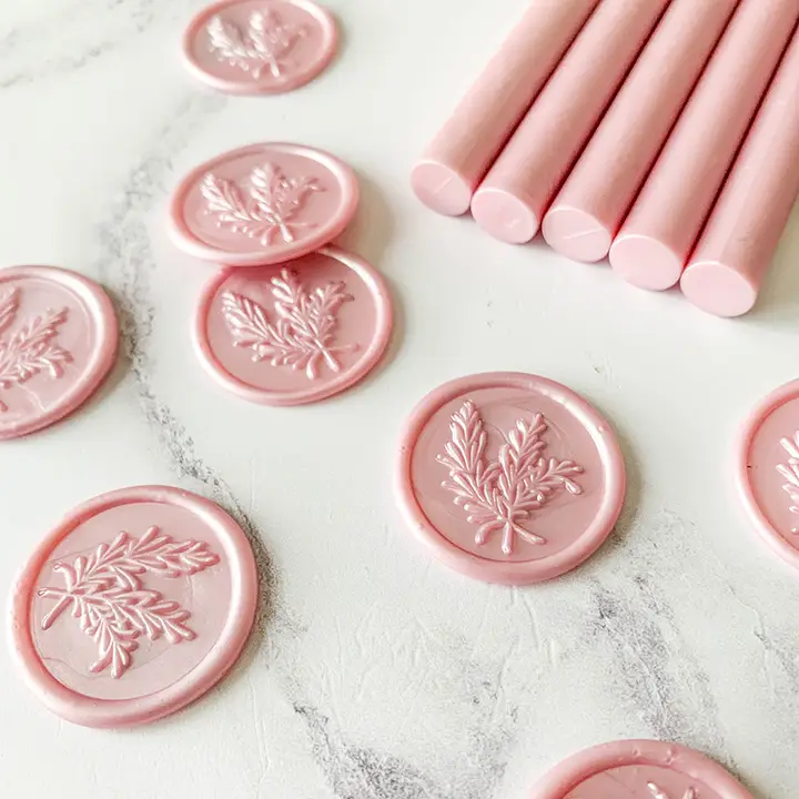 Create beautiful items of stationery with your choice of wax seal and sealing wax. This glue gun sealing wax makes application really easy. Suitable for use with a cool-temperature glue gun. Each stick of wax can produce 10-15 seals. 11mm diameter plastic free!!!! All our sealing wax is made in the traditional way with only natural resins and beeswax. Soft pink color. 11mm