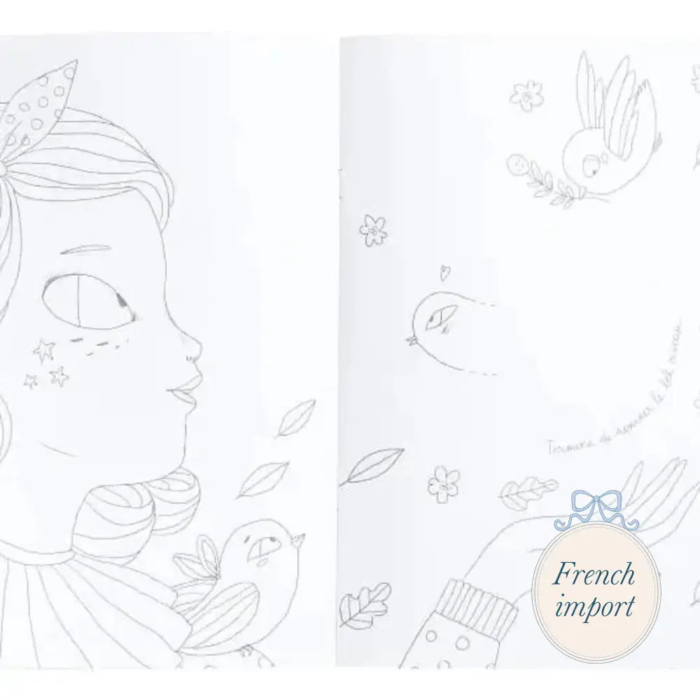 Description From the “Parisiennes” collection, this coloring book has a delightful portrait in pastel colors of Madame Constance on the cover. It is enhanced by a pastel floral pattern and the theme delicately sketched in black by the artist.