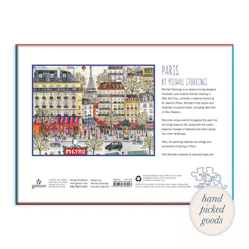 Features: Michael Storrings captures that special essence and magic of cities in different seasons. Michael Storrings brings to life the charm and romance of the celebrated city in this detailed landscape painting. Contains informational insert about artist and image, 1000 pieces.
