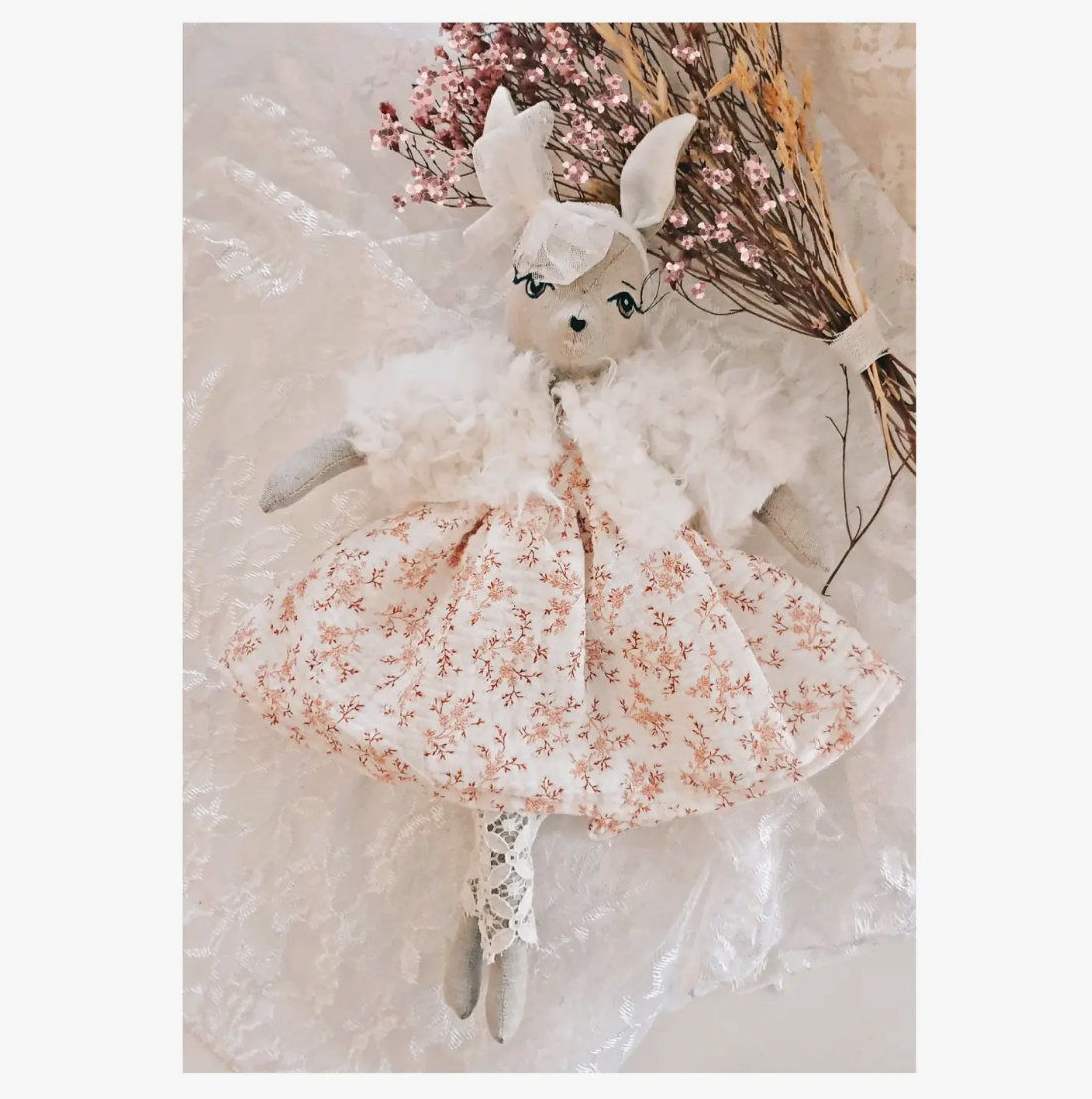 Introducing the Romantic Mini Deer Doll: A petite enchantment! Crafted from Oeko-Tex linen, this deer doll measures approximately 25 cm. Adorned in a double-gauze cotton dress and a cozy synthetic fur jacket, she exudes romance. With a beautifully painted face using textile paint and a padded body filled with synthetic wadding, she's perfect for cuddling and imaginative play. Embrace the magic and create wonderful memories with this delightful doll.